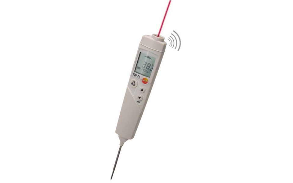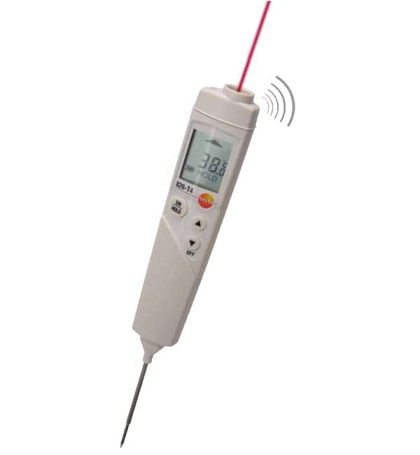 testo 826-T4紅外及刺入式溫度計可通過紅外測量方式無損快速掃描表面溫度,若表面溫度超出限制范圍,還可通過自帶的刺入式溫度探頭進行快速精確的中心溫度測量 (如酸奶等食品)。